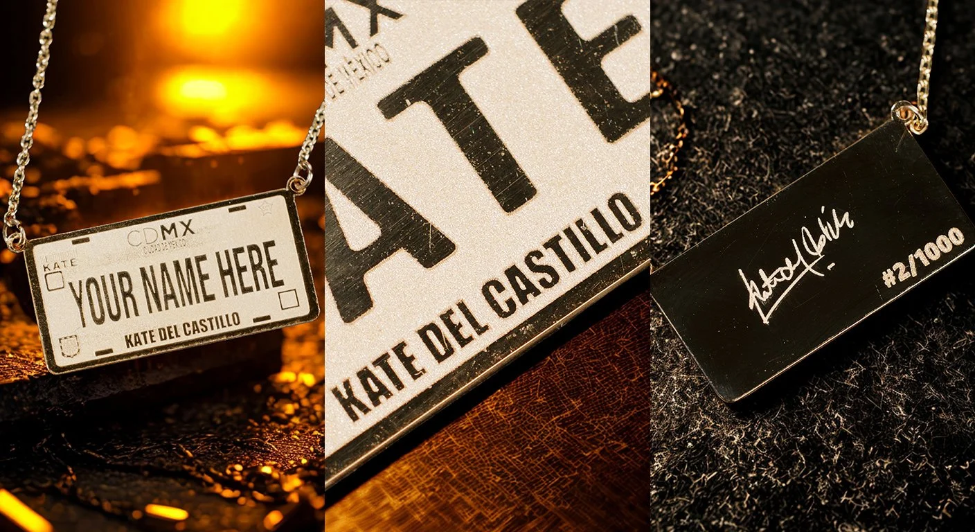 Each piece is designed in the style of a license plate and customised with your name, making it a truly personal expression of identity and style. Sleek, striking, and dripping in star power, it’s a limited edition collaboration with Kate del Castillo - and only 1,000 exist worldwide.